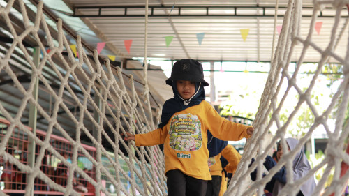 Tidak hanya itu, anak-anak juga diajak mencoba aktivitas memanah yang melatih fokus dan ketangkasan. Anak-anak tampak antusias saat mencoba menarik busur dengan bimbingan orang tua dan guru.