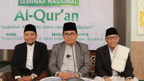 SURABAYA – Masjid At-Taqwa Karah Indah, Jambangan, Surabaya menjadi tempat terselenggaranya Seminar Nasional Al Qur’an bersama LPQ Nurul Falah Surabaya yang menghadirkan Prof. Dr. Sanuri, S.Ag, M.Fil.I, Guru Besar Bidang Pemikiran Hukum Ekonomi Syariah Universitas Islam Negeri Sunan Ampel Surabaya. Acara ini difokuskan pada pengembangan pengetahuan Al Qur’an sejak usia dini bagi santri LPQ Nurul Falah Surabaya.